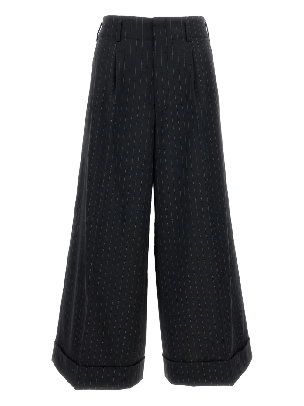 pinstripe cuffed trousers Highlights - Black - Pinstripe pattern - Cuffed hem - Belt loops - Rear jetted pockets - Side slit pockets Imported Composition Polyester 68%, Wool 29%, Polyurethane 3% Washing instructions Read Manufacturer Guidelines