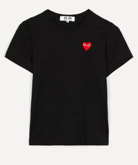 Editor's Notes Comme des Garçons PLAY’s instantly recognisable, heart logo is printed at the chest of this cotton t-shirt . Comme des Garçons PLAY creates well-tailored wardrobe basics – often the brand’s ubiquitous heart-with-eyes logo patch can be spotted peeping from the piece. This short-sleeve t-shirt is cut from cotton in a crew-neck style. The heart logo appears at the chest - pair with rolled-up chinos and white sneakers. Features Short-sleeve t-shirt Crew-neck Heart logo at chest Relaxed fit Composition & Care 100% Cotton Hand wash or dry clean only About Comme des Garçons Play Instantly recognisable the world over, Comme des Garçons PLAY’s red heart-with-eyes logo was created by Polish artist Filip Pagowski. PLAY launched in 2002 and is designed by Comme des Garçons founder Rei Kawakubo. Snubbing traditional fashion seasons, the label produces playful, often logo-adorned ready-to-wear, alongside sought-after collaborations with other artists and creatives.