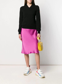 classic knit sweater Laid-back style with a playful twist is the look at Comme Des Garcons Play. Presenting this black wool classic knit sweater from Comme Des Garcons Play. Featuring a v-neck, long sleeves and a ribbed hem and cuffs. Imported Composition Wool 100% SIZE & FIT Model measurements Height 5 ft 9 in(1.76 m) Bust/Chest 31.88 in(81 cm) Hips 37 in(94 cm) Waist 25.19 in(64 cm) FittingInformation This piece fits true to size. We recommend you get your regular size Made with a mid-weight stretch fabric Washing instructions Dry Clean Only