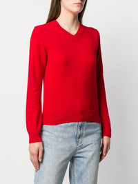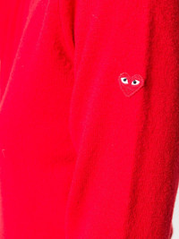 classic knit sweater Laid-back style with a playful twist is the look at Comme Des Garcons Play. Presenting this red wool classic knit sweater from Comme Des Garcons Play. Featuring a v-neck, long sleeves and a ribbed hem and cuffs. Imported Composition Wool 100% SIZE & FIT Model measurements Height 5 ft 9 in(1.76 m) Bust/Chest 31.88 in(81 cm) Hips 37 in(94 cm) Waist 25.19 in(64 cm) FittingInformation This piece fits true to size. We recommend you get your regular size Made with a mid-weight stretch fabric Washing instructions Dry Clean Only