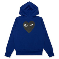 COMME DES GARCONS PLAY WOMEN'S BIG BLACK HEART HOODED SWEATSHIRT - NAVY