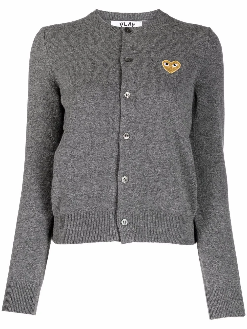 embroidered heart wool-knit cardigan grey wool knitted construction ribbed detailing embroidered signature heart round neck front button fastening long sleeves Imported Composition Wool 100% SIZE & FIT Model measurements Height 5 ft 10 in(1.78 m) Bust/Chest 33.07 in(84 cm) Hips 35.82 in(91 cm) Waist 26.96 in(68.5 cm) FittingInformation This piece fits true to size. We recommend you get your regular size Cut for a relaxed fit Made with a mid-weight fabric Measurement BUST 34.64 in(88 cm) LENGTH 22.44 in(57 cm) SLEEVE LENGTH 24.01 in(61 cm) Shoulder Width 13.77 in(35 cm) Washing instructions Dry Clean Only
