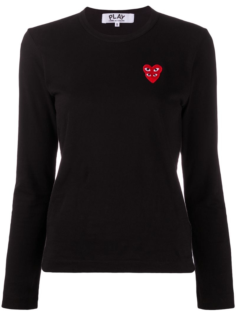embroidered-logo longsleeved top Black cotton embroidered-logo longsleeved top from COMME DES GARÇONS PLAY featuring round neck, long sleeves, embroidered logo and straight hem. Imported Composition Cotton 100% SIZE & FIT Model measurements Height 5 ft 10 in(1.79 m) Bust/Chest 34.3 in(87 cm) Hips 37 in(94 cm) Waist 25.2 in(64 cm) FittingInformation This piece fits true to size. We recommend you get your regular size Cut for a slim fit Made with a mid-weight fabric