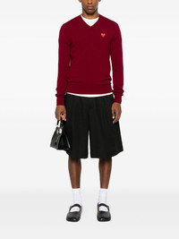 heart-emblem V-neck sweater