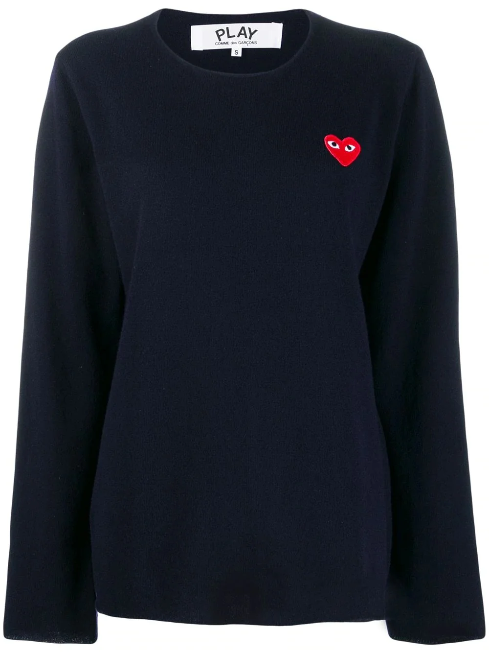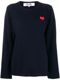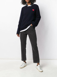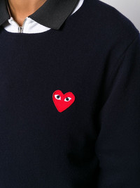 heart logo patch sweater 2 NAVY Wool or fine animal hair->Wool heart logo patch sweater from Comme Des Garcons Play. Imported Composition Wool 100% SIZE & FIT Model measurements Height 5 ft 11 in(1.8 m) Bust/Chest 31.49 in(80 cm) Hips 35.82 in(91 cm) Waist 24.8 in(63 cm) FittingInformation Designed for a relaxed fit, this piece allows for comfort and movement when worn Made with a midweight knit, this piece offers some stretch This piece fits small – take one size up Washing instructions Dry Clean Only