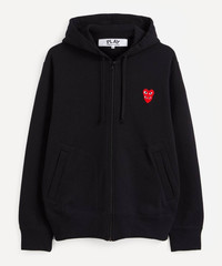 Editor's Notes A mark of in-the-know style for nearly two decades, Comme des Garçons PLAY’s instantly recognisable, heart logo patch christens the chest of this cotton, zip-up hoodie . Comme des Garçons PLAY creates well-tailored wardrobe basics – often the brand’s ubiquitous heart-with-eyes logo patch can be spotted peeping from the piece. This soft cotton hoodie has a drawstring neckline and tonal zip. The brand's double heart logo appears at the chest - pair with classic indigo denim. Features Hoodie Cotton Ribbed trims Zip-up Tonal zip Drawstring neck Double heart logo patch at chest SIZE & FIT Model is 186cm/6'1"; Chest: 92cm; Waist: 71cm; and wears size M Composition & Care 100% Cotton Dry clean only About Comme des Garçons Play Instantly recognisable the world over, Comme des Garçons PLAY’s red heart-with-eyes logo was created by Polish artist Filip Pagowski. PLAY launched in 2002 and is designed by Comme des Garçons founder Rei Kawakubo. Snubbing traditional fashion seasons, the label produces playful, often logo-adorned ready-to-wear, alongside sought-after collaborations with other artists and creatives.