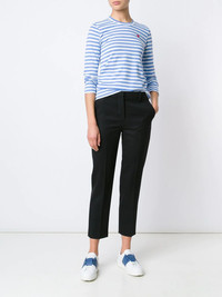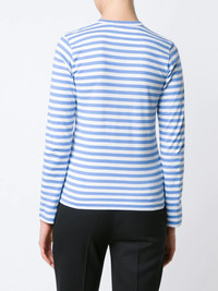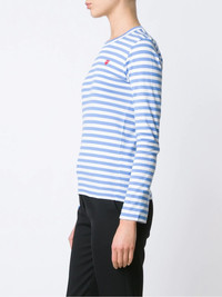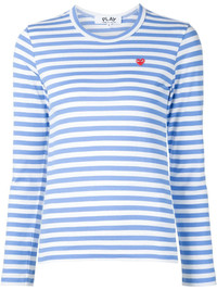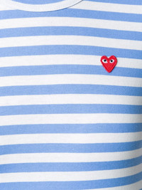 heart logo striped T-shirt Simple yet effective, this long-sleeved T-shirt from Comme Des Garcons Play is enhanced by the addition of the appliqued iconic mini red heart synonymous with the brand, which pleasantly contrasts the blue and white stripes. This cotton T-shirt from Comme Des Garcons Play also features a round neck and a straight hem. Imported Composition Cotton 100% SIZE & FIT Model measurements Height 5 ft 10 in(1.77 m) Bust/Chest 33.85 in(86 cm) Hips 35.03 in(89 cm) Waist 24.01 in(61 cm) Washing instructions Machine Wash