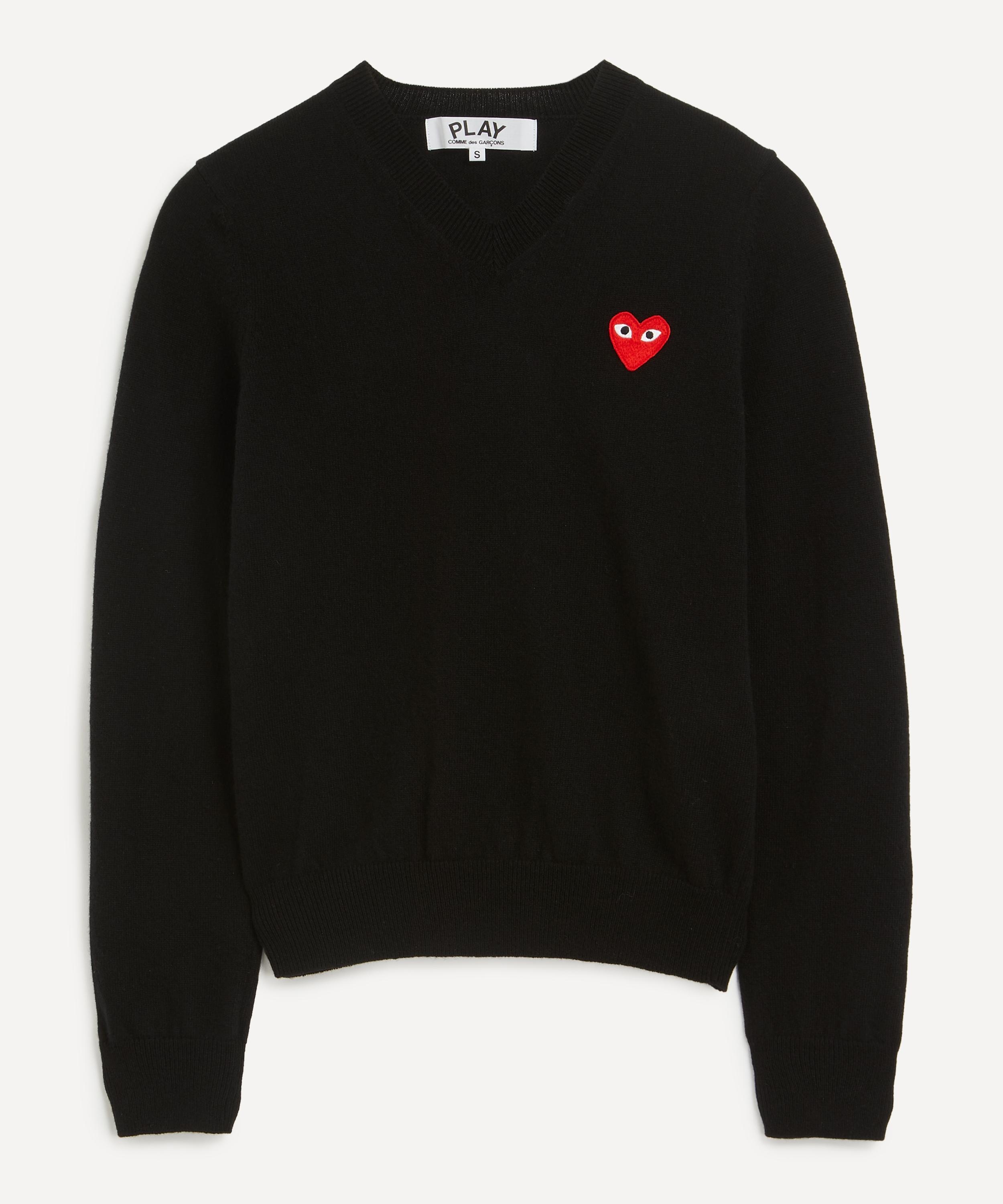DETAILS Wool pullover V-neck Regular fit Long sleeves Ribbed hem and cuffs Red heart logo appliqué at chest Black colourway Made in Japan SIZE & FIT Model is 180cm/5'11"; Chest: 82cm; Waist: 63cm; Hips: 94cm and wears a size S COMPOSITION & CARE 100% Wool Dry clean only
