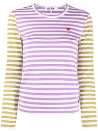 heart-patch cotton T-shirt Instantly recognizable thanks to the brand's distinctive embroidered heart logo patch to one side; this multicolour striped top forms part of the Comme des Garcons PLAY SS22 collection. Imported Composition Cotton 100% SIZE & FIT Model measurements Height 5 ft 10 in(1.78 m) Bust/Chest 30.31 in(77 cm) Hips 36.61 in(93 cm) Waist 24.8 in(63 cm) Measurement BUST 29.92 in(76 cm) FittingInformation This piece fits true to size. We recommend you get your regular size Cut for a slim fit Made with a mid-weight fabric Washing instructions Hand Wash