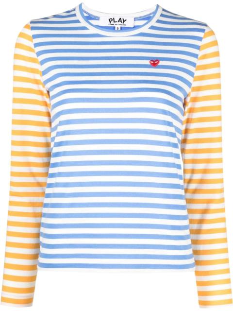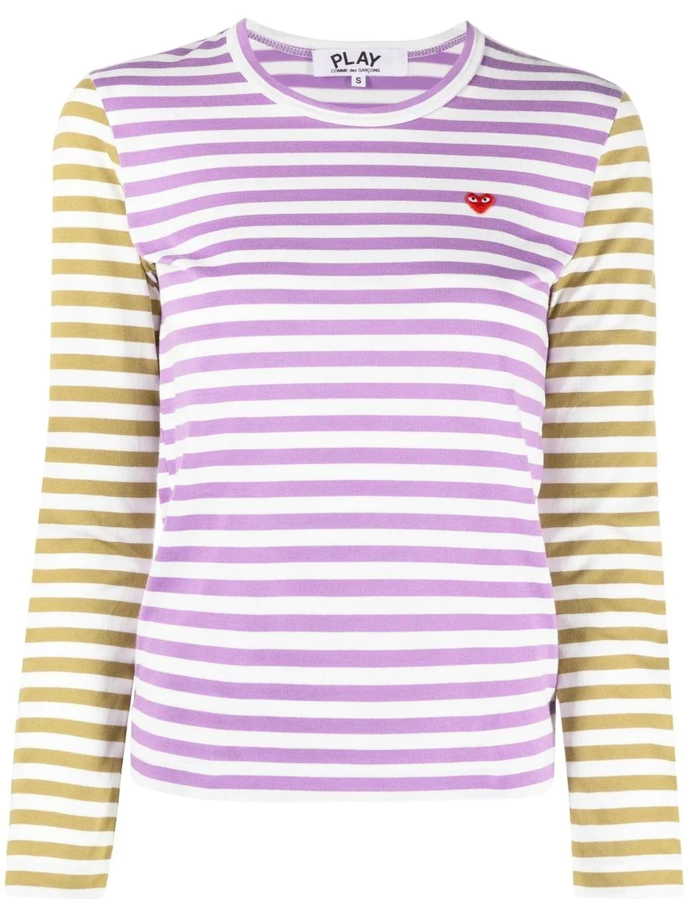 heart-patch cotton T-shirt Instantly recognizable thanks to the brand's distinctive embroidered heart logo patch to one side; this multicolour striped top forms part of the Comme des Garcons PLAY SS22 collection. Imported Composition Cotton 100% SIZE & FIT Model measurements Height 5 ft 10 in(1.78 m) Bust/Chest 30.31 in(77 cm) Hips 36.61 in(93 cm) Waist 24.8 in(63 cm) Measurement BUST 29.92 in(76 cm) FittingInformation This piece fits true to size. We recommend you get your regular size Cut for a slim fit Made with a mid-weight fabric