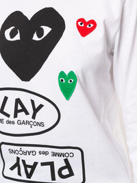 logo print long sleeve t-shirt Highlights - White - Cotton - Crew neck - Long sleeves - Logo print to the front - Signature heart motifs - Straight hem Imported Composition Cotton 100% SIZE & FIT Model measurements Height 5 ft 11 in(1.8 m) Bust/Chest 28.34 in(72 cm) Hips 35.43 in(90 cm) Waist 23.62 in(60 cm) FittingInformation Designed for a relaxed fit, this piece allows for comfort and movement when worn Made from a midweight non-stretch fabric, this piece offers minimal elasticity when worn This piece fits small – take one size up Washing instructions Hand Wash