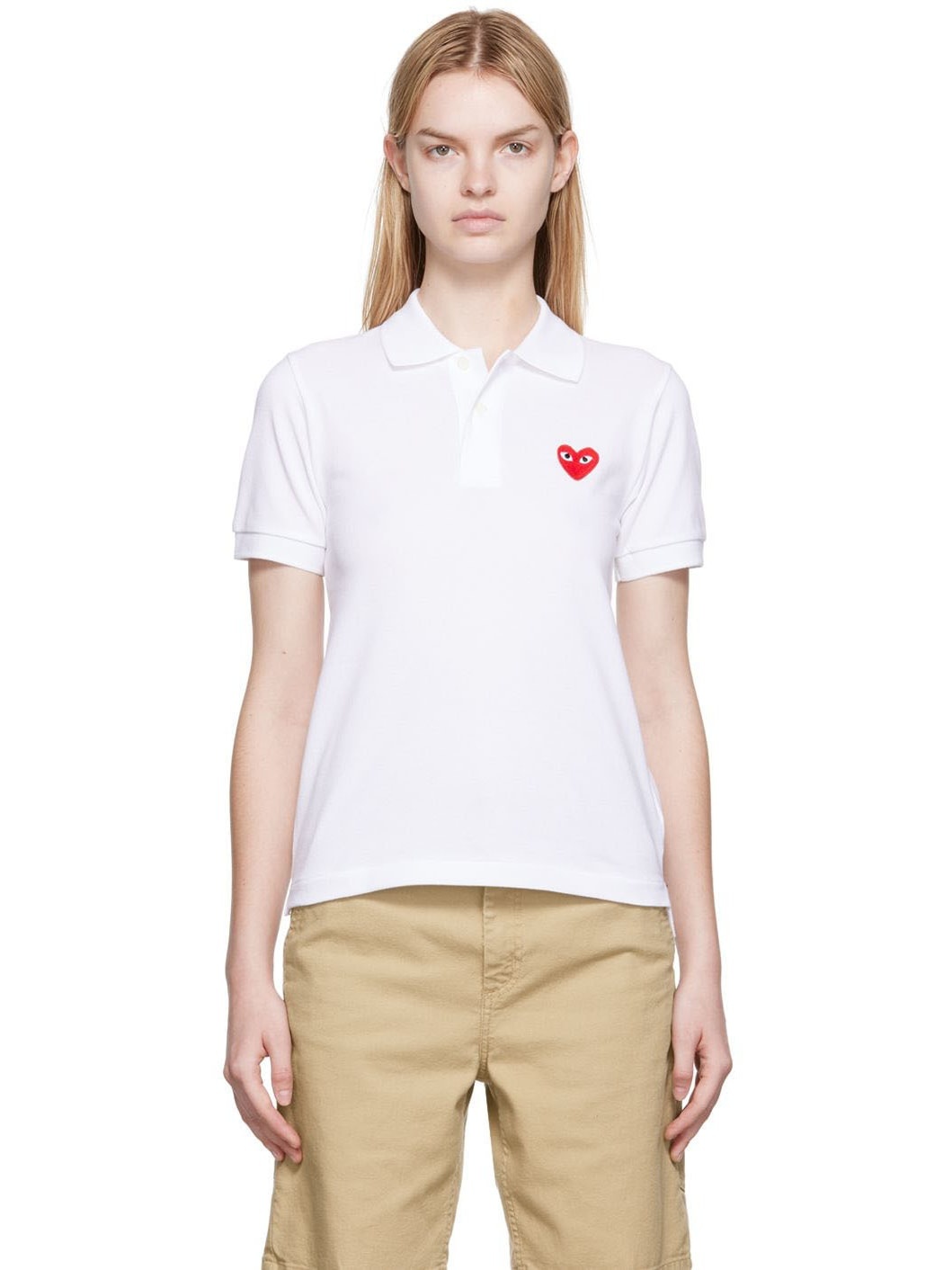 Cotton piqué polo. · Rib knit spread collar and cuffs · Two-button placket · Embroidered logo patch at chest · Vented side seams Supplier color: White 100% cotton.