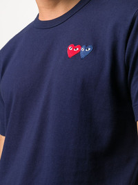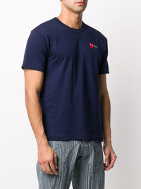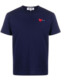 heart patch short sleeve T-shirt Navy cotton heart patch short sleeve T-shirt from Comme Des Garcons Play featuring a contrast embroidered logo at the chest, a crew neck, short sleeves and a straight hem. Imported Composition Cotton 100% SIZE & FIT Model measurements Height 6 ft 1 in(1.85 m) Bust/Chest 37.79 in(96 cm) Hips 37.4 in(95 cm) Waist 30.7 in(78 cm) Measurement Shoulder Width 16.53 in(42 cm) FittingInformation This piece fits true to size. We recommend you get your regular size Cut for a relaxed fit Made with a mid-weight fabric