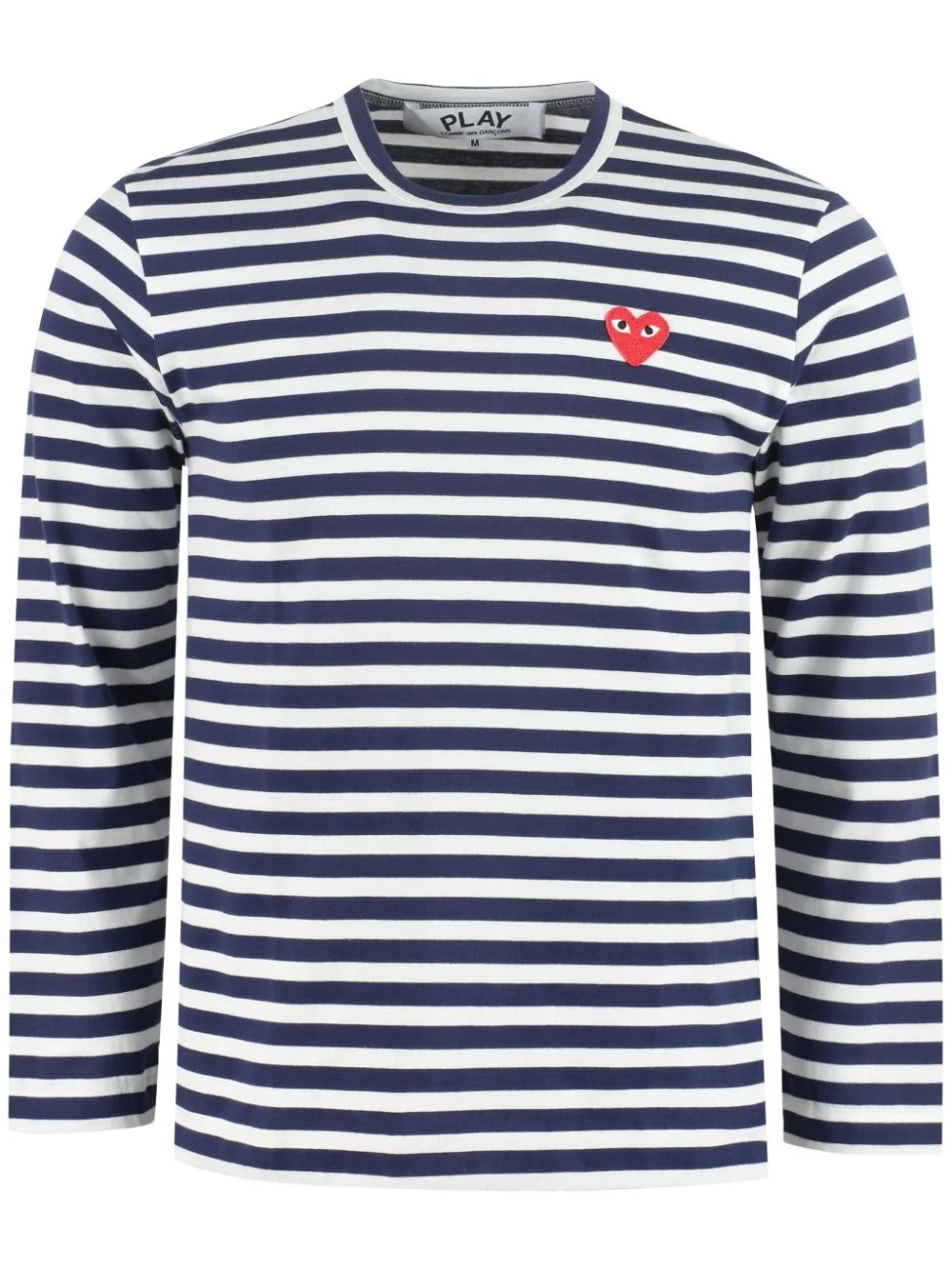 applique-logo striped T-shirt Highlights - Blue/white - Cotton - Horizontal stripe pattern - Round neck - Applique logo - Long sleeves - Straight hem - When buying this unisex item, keep in mind that it is graded in standard men's sizing. Imported Composition Cotton 100% SIZE & FIT Measurement Shoulder Width 16.53 in(42 cm)