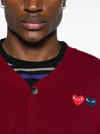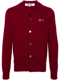 Heart-patch wool cardigan Highlights - Burgundy - Wool - Knitted construction - Signature heart patch - V-neck - Front button fastening - Long sleeves - Ribbed cuffs and hem - When buying this unisex item, keep in mind that it is graded in standard men's sizing. Imported Composition Wool 100% SIZE & FIT Model measurements Height 5 ft 9 in(1.75 m) Bust/Chest 34.64 in(88 cm) Hips 36.61 in(93 cm) Waist 26.37 in(67 cm) FittingInformation This piece is unisex – expect a slim fit if you usually select men's sizing; expect a looser fit if you usually select women's sizes The ribbed hem offers a close, comfortable fit Made with a midweight knit, this piece offers some stretch