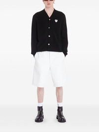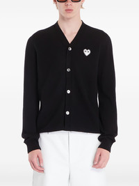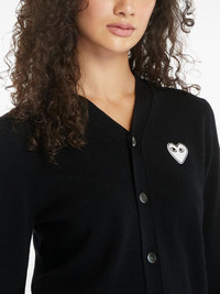 heart-patch wool cardigan Highlights - Black - Wool - Fine knit - Brushed finish - V-neck - Long sleeves - Signature heart patch - Ribbed cuffs and hem - Front button fastening - When buying this unisex item, keep in mind that it is graded in standard men's sizing. Imported Composition Wool 100%