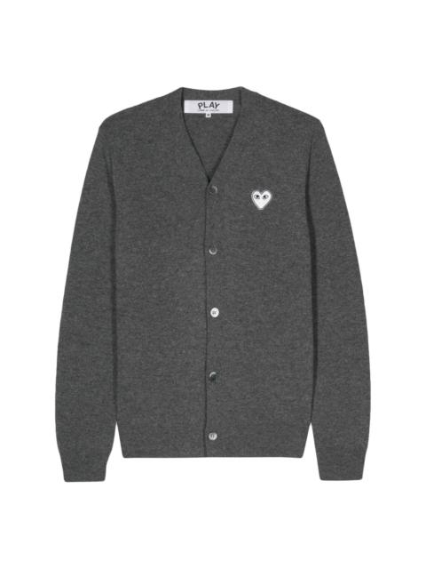 heart-patch wool cardigan Highlights - Medium grey - Wool - Fine knit - Brushed finish - V-neck - Long sleeves - Ribbed cuffs and hem - Front button fastening - When buying this unisex item, keep in mind that it is graded in standard men's sizing. Imported Composition Wool 100%