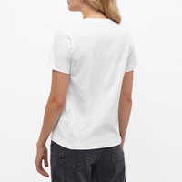 This women's Comme des Garçons PLAY tee has the line's bug eyed heart character peeping playfully from its hemline and chest. Made with love in Japan, the red and white piece is comfortably completed with a ribbed crew neckline. - 100% Cotton - Ribbed Crewneck - Appliqué Branding - Printed Branding - Made in Japan