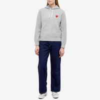 This women's pullover hoody showcases the minimal styling and attention to detail of Comme des Garçons PLAY. Constructed from premium jersey cotton, the pullover features all the casualwear classics: a drawstring hood, thick ribbed knits and a large pouch pocket. It's finished in true CdG fashion with the brand's embroidered heart to the chest. - 100% Cotton - Drawstring Hood - Pouch Pocket - Appliqué Branding - Ribbed Trims - Made in Japan