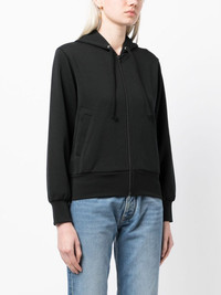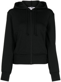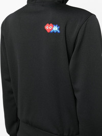 logo-applique zip-up hoodie Comme des Garcons Play is famed for adding cheeky touches to everyday pieces. This black zip-up hoodie is the perfect example. Designed in collaboration with the Artist Invader, it features an applique logo inspired by the classic Space Invaders game. Highlights - Black - Jersey texture - Applique logo - Drawstring hood - Front zip fastening - Long sleeves - Ribbed cuffs and hem - Two side welt pockets - Straight hem Imported Composition Body: Polyester 100% SIZE & FIT Model measurements Height 5 ft 10 in(1.77 m) Bust/Chest 31.88 in(81 cm) Hips 33.85 in(86 cm) Waist 24.01 in(61 cm) FittingInformation Designed for a slim fit that sits just away from the body offering a close yet comfortable fit Made from a midweight non-stretch fabric, this piece offers minimal elasticity when worn This piece fits true to size – take your usual size Washing instructions Machine Wash