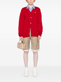 logo-applique wool cardigan Highlights - Red - Wool - Knitted construction - Signature heart patch - V-neck - Front button fastening - Long sleeves - Ribbed cuffs and hem - When buying this unisex item, keep in mind that it is graded in standard men's sizing. Imported Composition Wool 100% SIZE & FIT Model measurements Height 5 ft 9 in(1.75 m) Bust/Chest 34.64 in(88 cm) Hips 36.61 in(93 cm) Waist 26.37 in(67 cm) Measurement LENGTH 24.8 in(63 cm) SLEEVE LENGTH 25.19 in(64 cm) Shoulder Width 14.96 in(38 cm) FittingInformation This piece is unisex – expect a slim fit if you usually select men's sizing; expect a looser fit if you usually select women's sizes The ribbed hem offers a close, comfortable fit Made with a midweight knit, this piece offers some stretch