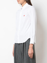 White cotton logo heart print shirt from Comme Des Garçons Play featuring a classic collar, a logo to the chest, a button fastening, long sleeves and a slim fit. Imported Composition Cotton 100% Product measurements for size: XS Sleeve length: 56 cm (22 in) Shoulder: 36 cm (14.2 in) Length: 61 cm (24 in) Bust: 84 cm (33.1 in) S Sleeve length: 57 cm (22.4 in) Shoulder: 37 cm (14.6 in) Length: 63 cm (24.8 in) Bust: 86 cm (33.9 in) M Sleeve length: 59 cm (23.2 in) Shoulder: 38 cm (15 in) Length: 65 cm (25.6 in) Bust: 90 cm (35.4 in) L Sleeve length: 60 cm (23.6 in) Shoulder: 40 cm (15.7 in) Length: 66 cm (26 in) Bust: 94 cm (37 in)