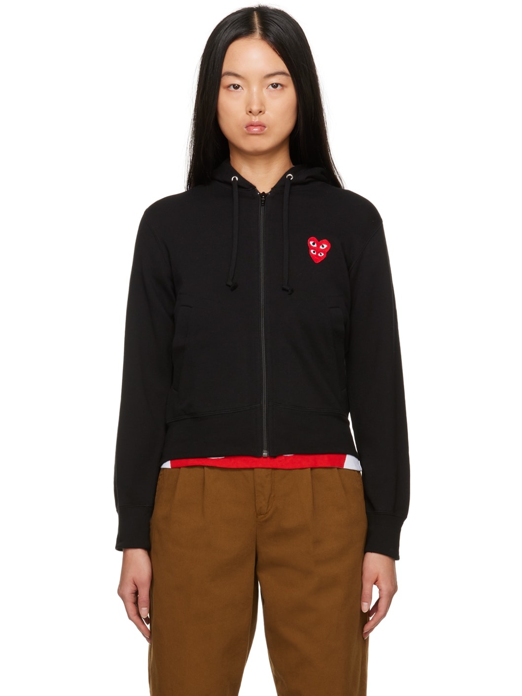French terry hoodie. · Drawstring at hood · Zip closure · Embroidered logo patches at chest · Patch pockets · Rib knit hem and cuffs Supplier color: Black