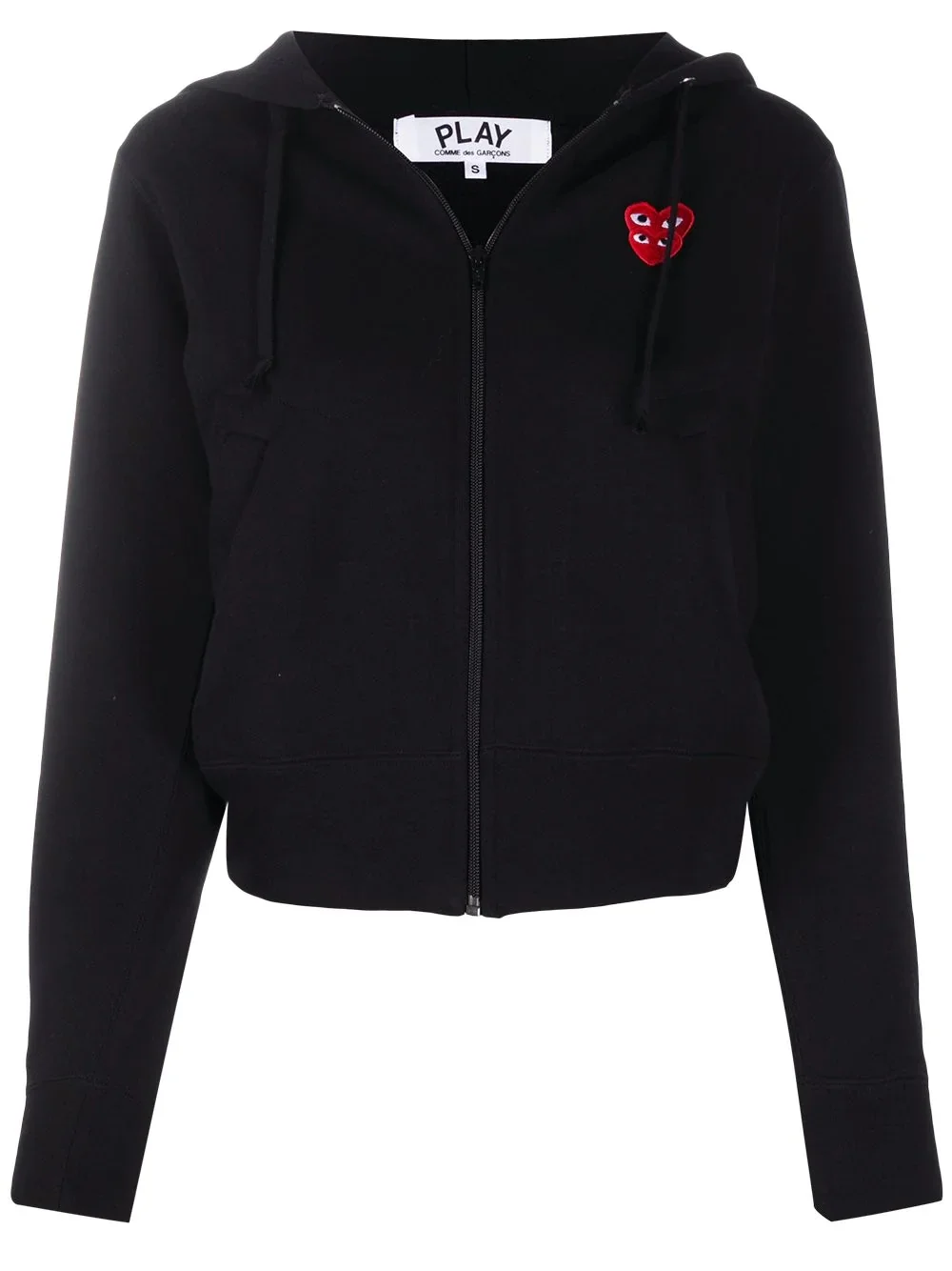 logo-motif zip-up hoodie Highlights - Black/red - Cotton - Drawstring hood - Front zip fastening - Signature red heart motif - Long sleeves - Two front pouch pockets Imported Composition Cotton 100% SIZE & FIT Model measurements Height 5 ft 10 in(1.79 m) Bust/Chest 33.07 in(84 cm) Hips 35.82 in(91 cm) Waist 24.01 in(61 cm) FittingInformation Designed for a relaxed fit, this piece allows for comfort and movement when worn The ribbed hem offers a close, comfortable fit Made from a midweight non-stretch fabric, this piece offers minimal elasticity when worn This piece fits small – take one size up Measurement SLEEVE LENGTH 21.65 in(55 cm) LENGTH 20.07 in(51 cm) BUST 33.85 in(86 cm) Shoulder Width 13.38 in(34 cm)