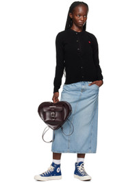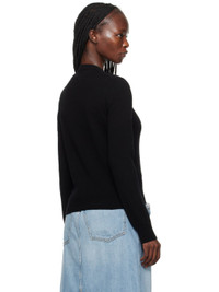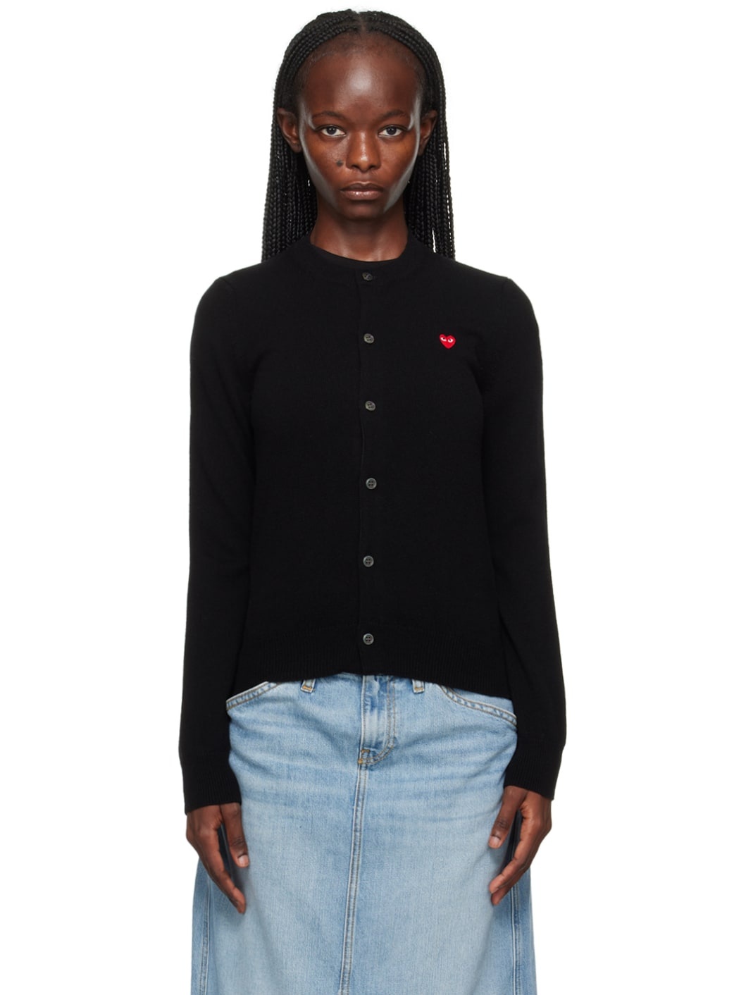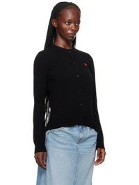 Knit wool cardigan. · Rib knit crewneck, hem, and cuffs · Button closure · Embroidered graphic patch at chest Supplier color: Black