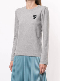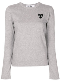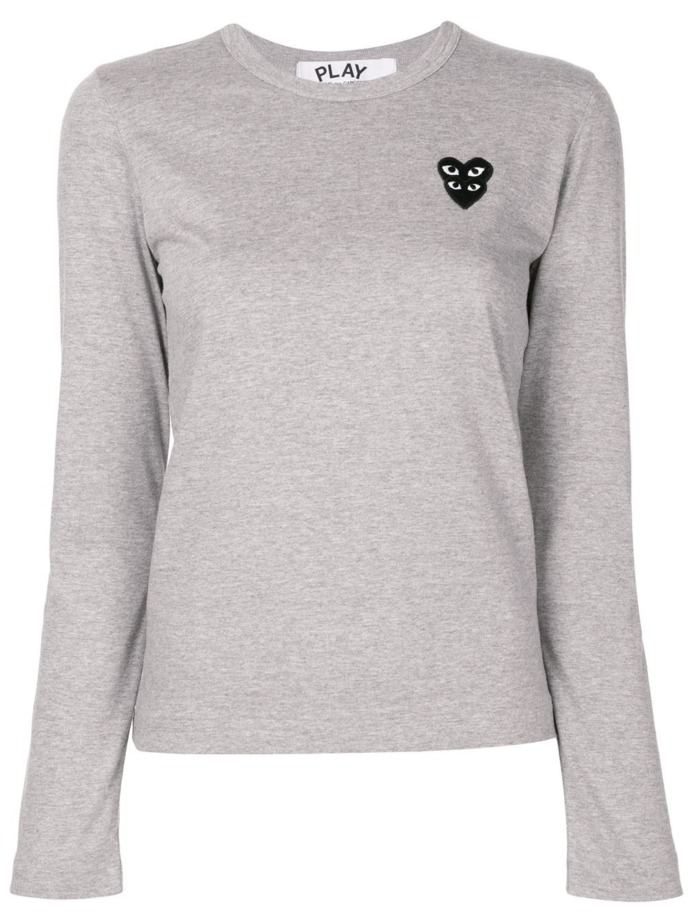 Grey cotton logo patch T-shirt from COMME DES GARÇONS PLAY featuring logo patch to the front, crew neck, long sleeves, straight hem and slim fit. Highlights - Grey - Cotton - Logo patch to the front - Crew neck - Long sleeves - Straight hem - Slim fit Imported Composition Cotton 100%