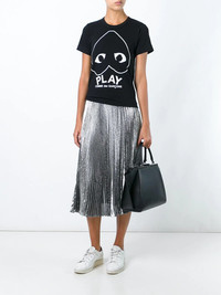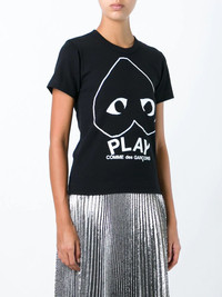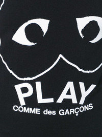 logo print T-shirt If anyone knows how to flip fashion on its head, it's Rei Kawakubo. Here the Comme Des Garcons Creative Director has done just that, literally, by flipping the iconic heart print upside down on this black cotton logo print T-shirt. This Comme Des Garcons Play piece also features a crew neck, short sleeves and a straight hem. Imported Composition Cotton 100% SIZE & FIT Model measurements Height 5 ft 10 in(1.77 m) Bust/Chest 32.28 in(82 cm) Hips 35.82 in(91 cm) Waist 24.8 in(63 cm) FittingInformation Designed for a relaxed fit, this piece allows for comfort and movement when worn Made from a midweight non-stretch fabric, this piece offers minimal elasticity when worn This piece fits small – take one size up Washing instructions Hand Wash