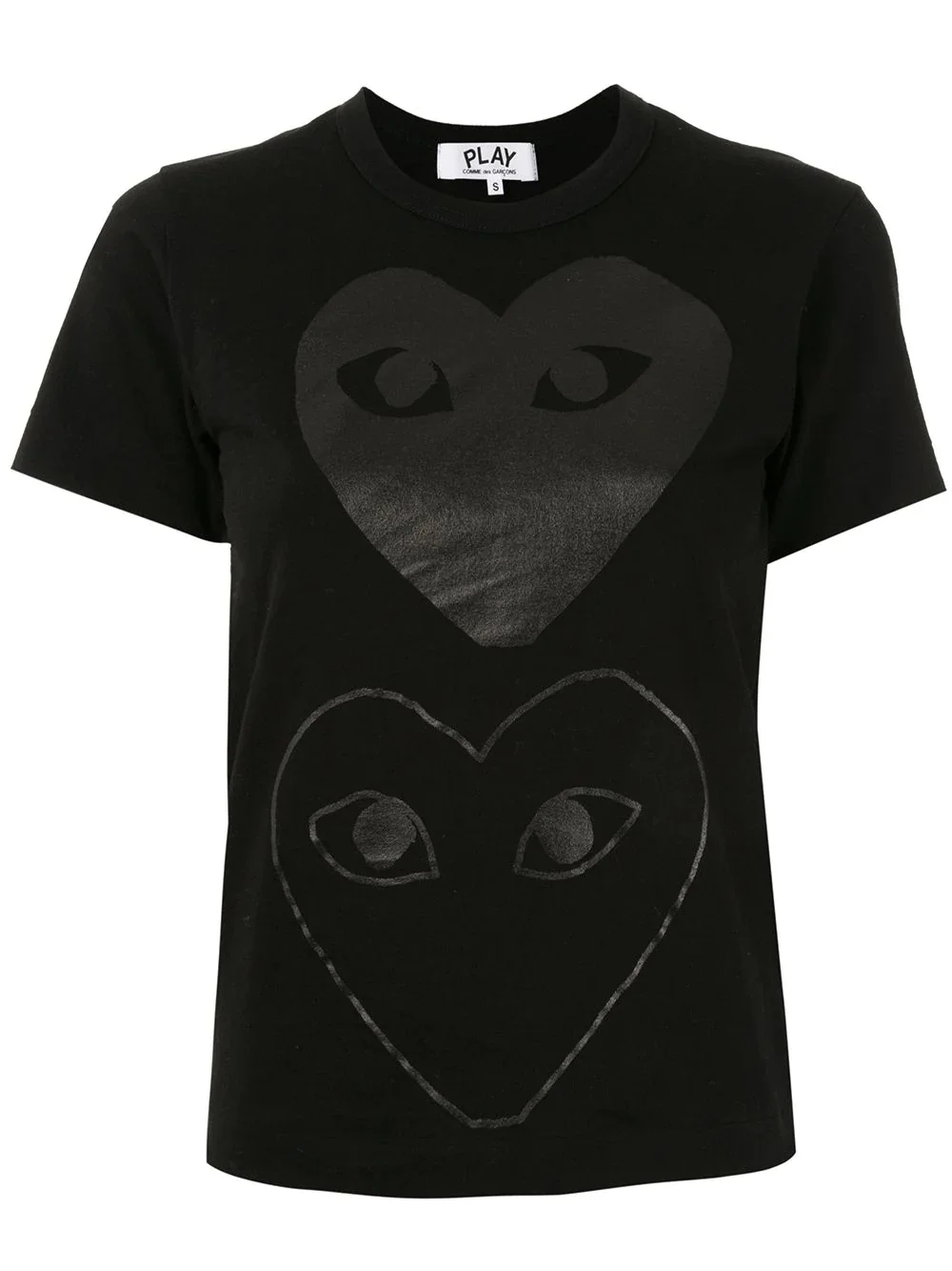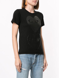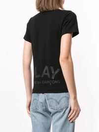 logo print T-shirt Black cotton logo print T-shirt from Comme Des Garcons Play featuring a printed logo to the front, a print to the rear, a ribbed crew neck and short sleeves. Imported Composition Cotton 100% SIZE & FIT Model measurements Height 5 ft 9 in(1.76 m) Bust/Chest 29.13 in(74 cm) Hips 33.07 in(84 cm) Waist 22.83 in(58 cm) FittingInformation This piece fits true to size. We recommend you get your regular size Cut for a slim fit Made with a mid-weight stretch fabric Washing instructions Machine Wash