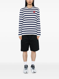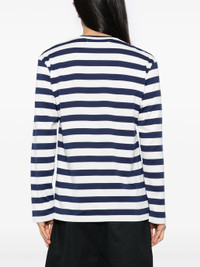 UNISEX RHINESTONE RED HEART STRIPED T-SHIRT - NAVY