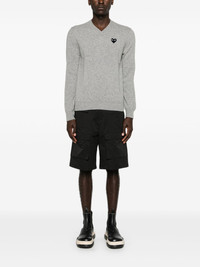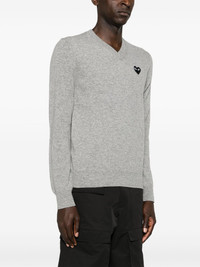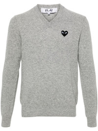 melange-effect wool jumper Highlights - Medium grey - Wool - Knitted construction - Melange effect - Heart patch - Ribbed v-neck - Long sleeves - Ribbed cuffs and hem - When buying this unisex item, keep in mind that it is graded in standard men's sizing. Imported Composition Wool 100% SIZE & FIT Model measurements Height 5 ft 10 in(1.77 m) Bust/Chest 33.07 in(84 cm) Hips 37 in(94 cm) Waist 24.8 in(63 cm) FittingInformation This unisex piece is designed for a relaxed fit whether you usually select women's or men's sizes Made with a midweight knit, this piece offers some stretch