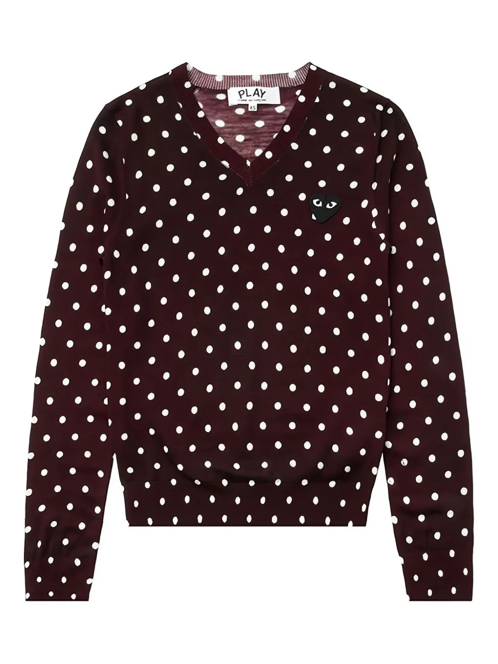 polka-dot jumper Highlights - Burgundy - V-neck - Polka dot embroidery - Long sleeves Imported Composition Wool 100% SIZE & FIT FittingInformation Designed for a relaxed fit, this piece allows for comfort and movement when worn Made with a midweight knit, this piece offers some stretch This piece fits small – take one size up Washing instructions Dry Clean Only