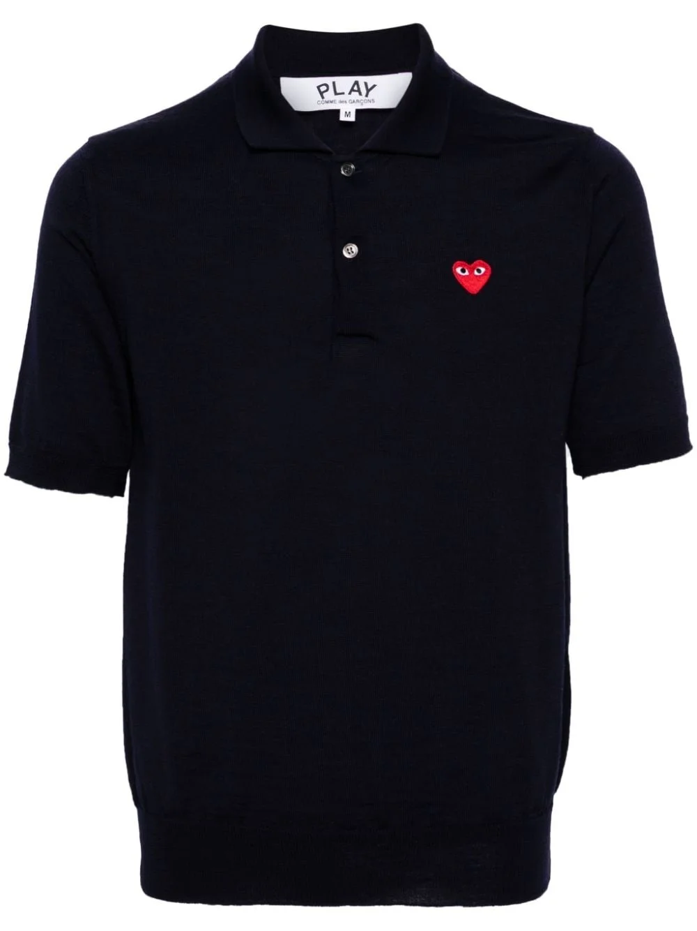 heart-patch wool polo shirt Highlights - Navy blue - Wool - Fine knit - Signature heart patch - Ribbed trim - Polo collar - Front button placket - Short sleeves - Straight hem - When buying this unisex item, keep in mind that it is graded in standard men's sizing. Imported Composition Wool 100% SIZE & FIT Model measurements Height 5 ft 10 in(1.77 m) Bust/Chest 33.07 in(84 cm) Hips 37 in(94 cm) Waist 24.8 in(63 cm) Measurement LENGTH 25.19 in(64 cm) SLEEVE LENGTH 10.23 in(26 cm) CHEST 37 in(94 cm) Shoulder Width 14.96 in(38 cm) FittingInformation This unisex piece is designed for a relaxed fit whether you usually select women's or men's sizes Made from a midweight non-stretch fabric, this piece offers minimal elasticity when worn