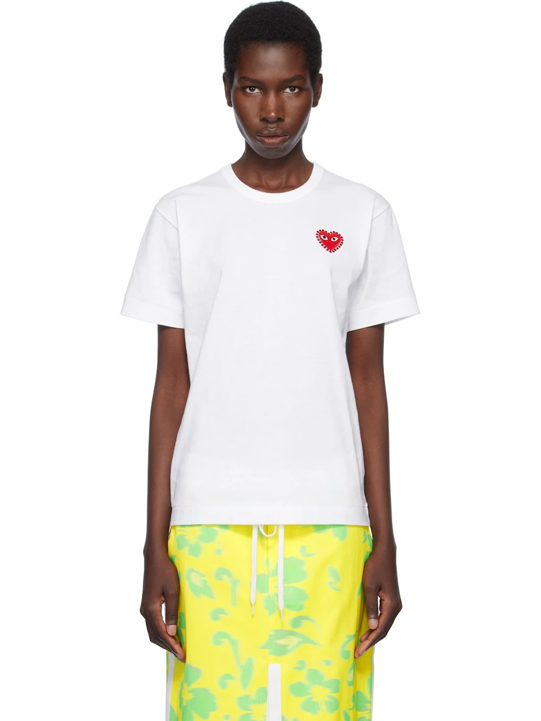 Cotton jersey T-shirt. · Rib-knit crewneck · Embroidered logo patch and crystal-cut accents at chest Supplier color: White 100% cotton. Made in Japan 252246F110003