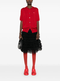 heart-patch wool cardigan Highlights - Rose red - Wool - Knitted construction - Ribbed trim - Signature heart patch - Crew neck - Front button fastening - Short sleeves - Straight hem - When buying this unisex item, keep in mind that it is graded in standard men's sizing. Imported Composition Wool 100% SIZE & FIT Model measurements Height 5 ft 11 in(1.8 m) Bust/Chest 32.67 in(83 cm) Hips 36.22 in(92 cm) Waist 24.4 in(62 cm) FittingInformation This unisex piece is designed for a relaxed fit whether you usually select women's or men's sizes The ribbed hem offers a close, comfortable fit Made with a midweight knit, this piece offers some stretch