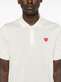 heart-patch wool polo shirt Highlights - Off-white - Wool - Fine knit - Signature heart patch - Ribbed trim - Polo collar - Front button placket - Short sleeves - Straight hem - When buying this unisex item, keep in mind that it is graded in standard men's sizing. Imported Composition Wool 100% SIZE & FIT Model measurements Height 5 ft 10 in(1.77 m) Bust/Chest 33.07 in(84 cm) Hips 37 in(94 cm) Waist 24.8 in(63 cm) FittingInformation This unisex piece is designed for a relaxed fit whether you usually select women's or men's sizes Made from a midweight non-stretch fabric, this piece offers minimal elasticity when worn Measurement LENGTH 25.19 in(64 cm) SLEEVE LENGTH 10.23 in(26 cm) CHEST 37 in(94 cm) Shoulder Width 14.96 in(38 cm)