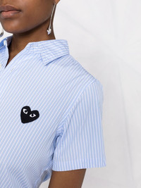 short-sleeved heart-embroidery pinstriped shirt blue cotton pinstripe pattern embroidered signature heart classic collar front button fastening short sleeves Imported Composition Cotton 100% SIZE & FIT Model measurements Height 5 ft 11 in(1.8 m) Bust/Chest 31.49 in(80 cm) Hips 36.61 in(93 cm) Waist 24.4 in(62 cm)