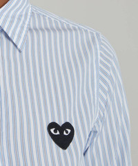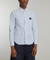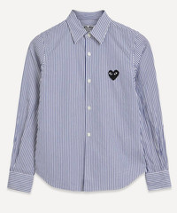 Editor's Notes Comme des Garçons PLAY’s instantly recognisable heart logo adorns this tailored striped shirt . Cut from cotton with a classic collar, buttoned closure and long, cuffed-sleeves it’s finished with the iconic heart logo appliquéd in black on the chest. Features Cotton shirt Regular fit Curved hem Classic collar Long-sleeves Buttoned cuffs and closure Green appliquéd heart logo at chest Blue striped pattern Made in Japan SIZE & FIT Model is 175cm/5'9"; Chest: 76cm; Waist: 63cm; Hip: 86cm and wears a size S Composition & Care 100% Cotton Machine washable About Comme des Garçons Play Instantly recognisable the world over, Comme des Garçons PLAY’s red heart-with-eyes logo was created by Polish artist Filip Pagowski. PLAY launched in 2002 and is designed by Comme des Garçons founder Rei Kawakubo. Snubbing traditional fashion seasons, the label produces playful, often logo-adorned ready-to-wear, alongside sought-after collaborations with other artists and creatives.