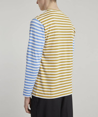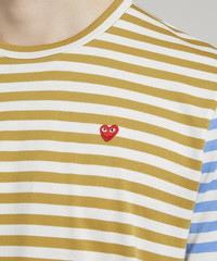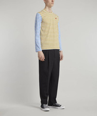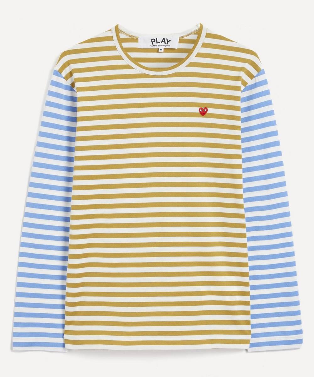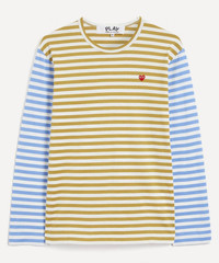 Editor's Notes A prerequisite addition to your new season casualwear edit, this striped knitted t-shirt from Comme des Garçons PLAY denotes a striking aesthetic that will excite any attire. Cut to a classic, long sleeve silhouette with classic crew-neckline, this eye-catching garment denotes a simply styled aesthetic enlivened by a duo of contrasting colours and all-over horizontal stripe. With one shade to the body an opposing hue illuminating the sleeves, this piece evokes a fun-loving feel that will elevate any ensemble. The pure cotton composition ensures unequalled comfort, meanwhile the heart motif to the chest proudly exhibits the fashion house’s iconic logo. Accompany with straight leg jeans and sneakers for peerlessly cool attire. Features Men’s striped knitted t-shirt Striped aesthetic Bold colourway Crewneck aesthetic Long sleeve silhouette Comme des Garçons logo patch to chest Pure cotton composition SIZE & FIT Model is 188cm/6'2"; Chest: 90cm, Waist: 74cm and wears size M Composition & Care 100% Cotton Machine washable About Comme des Garçons Play Instantly recognisable the world over, Comme des Garçons PLAY’s red heart-with-eyes logo was created by Polish artist Filip Pagowski. PLAY launched in 2002 and is designed by Comme des Garçons founder Rei Kawakubo. Snubbing traditional fashion seasons, the label produces playful, often logo-adorned ready-to-wear, alongside sought-after collaborations with other artists and creatives.