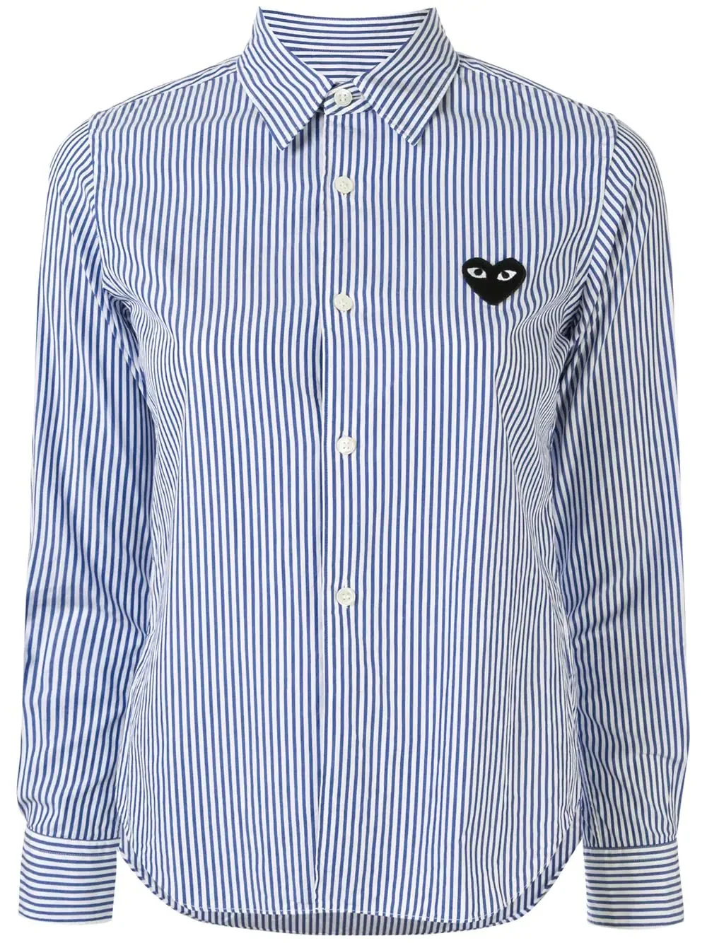 striped-print branded shirt Highlights - Blue/white - Cotton - Embroidered signature heart - Pinstripe print - Classic collar - Front button fastening - Long sleeves - Buttoned cuffs - Rear curved hem Imported Composition Cotton 100% SIZE & FIT Model measurements Height 5 ft 10 in(1.78 m) Bust/Chest 31.49 in(80 cm) Hips 34.64 in(88 cm) Waist 23.62 in(60 cm) Measurement SLEEVE LENGTH 21.25 in(54 cm) Shoulder Width 13.38 in(34 cm) LENGTH 24.01 in(61 cm) BUST 32.28 in(82 cm) FittingInformation This piece fits true to size. We recommend you get your regular size Cut for a slim fit Made with a mid-weight fabric Washing instructions Machine Wash