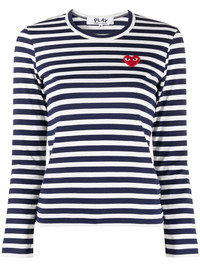striped print long-sleeve T-shirt navy blue/white cotton round neck long sleeves stripe print logo patch to the front Imported Composition Cotton 100% SIZE & FIT Model measurements Height 5 ft 9 in(1.75 m) Bust/Chest 32.28 in(82 cm) Hips 37 in(94 cm) Waist 25.98 in(66 cm) Measurement SLEEVE LENGTH 22.04 in(56 cm) Shoulder Width 12.99 in(33 cm) LENGTH 21.25 in(54 cm) BUST 29.13 in(74 cm) Washing instructions Hand Wash