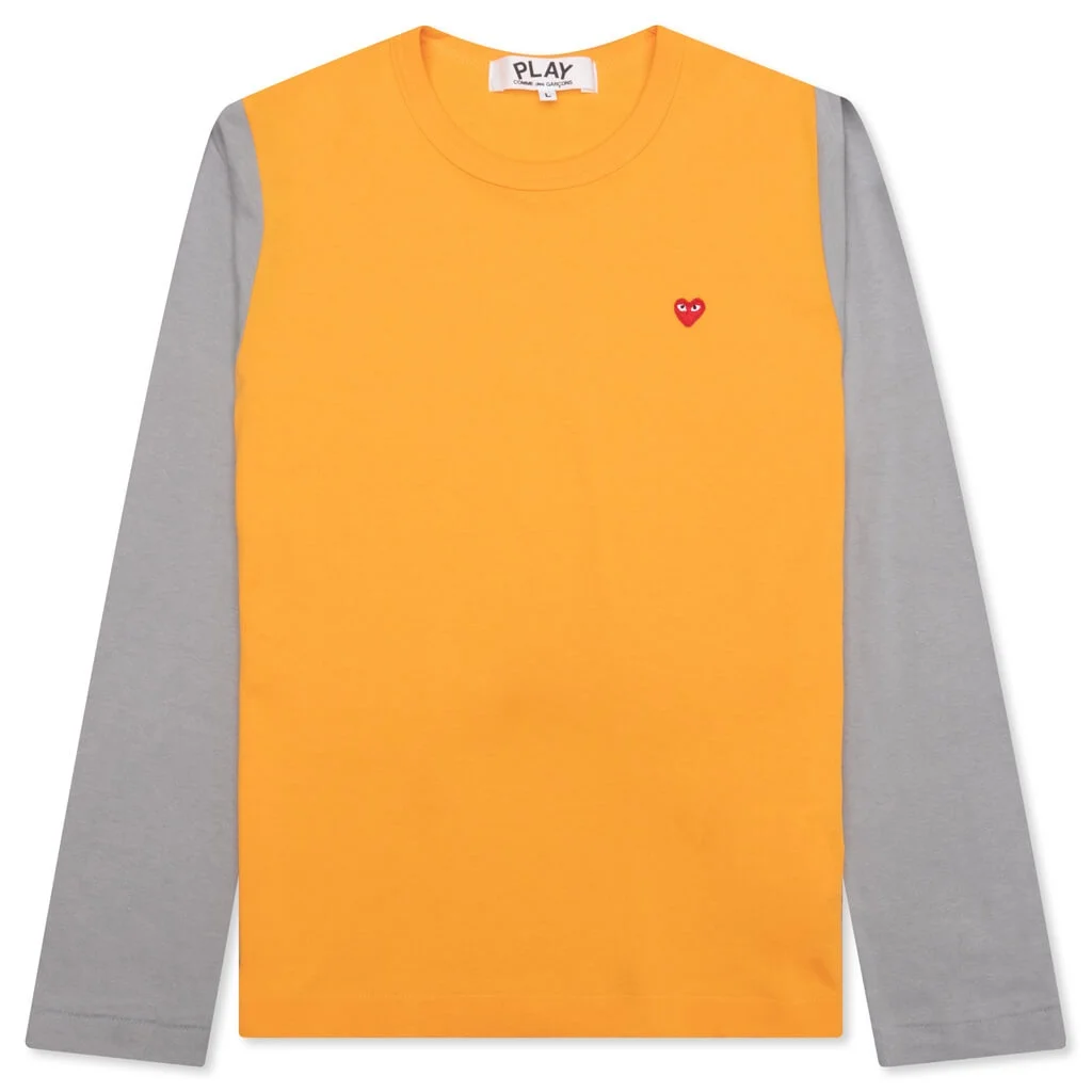 Upgrade your everyday apparel rotation with the Comme des Garcons PLAY Bi-Color T-Shirt. Featuring a cotton construction, the silhouette spotlights a ribbed neckline for added detail. An embroidered bug-eyed red heart motif resides on the chest for a finished look. - 100% cotton - Ribbed neckline - Embroidered heart - Style No: AZ-T315-051-2