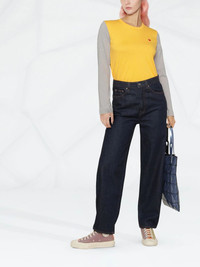 two-tone sweater With a classic design, this Comme Des Garcons Play long-sleeved jumper is elevated by the iconic heart motif on the chest, standing out from the two-tone knitted background. Highlights - Yellow/grey - Cotton - Knitted construction - Ribbed cuffs - Long sleeves - Straight hem - Logo patch at the chest Imported Composition Cotton 100% SIZE & FIT Model measurements Height 5 ft 10 in(1.78 m) Bust/Chest 32.28 in(82 cm) Hips 35.03 in(89 cm) Waist 23.22 in(59 cm) FittingInformation This piece fits true to size. We recommend you get your regular size Cut for a relaxed fit Made with a mid-weight fabric Washing instructions Machine Wash