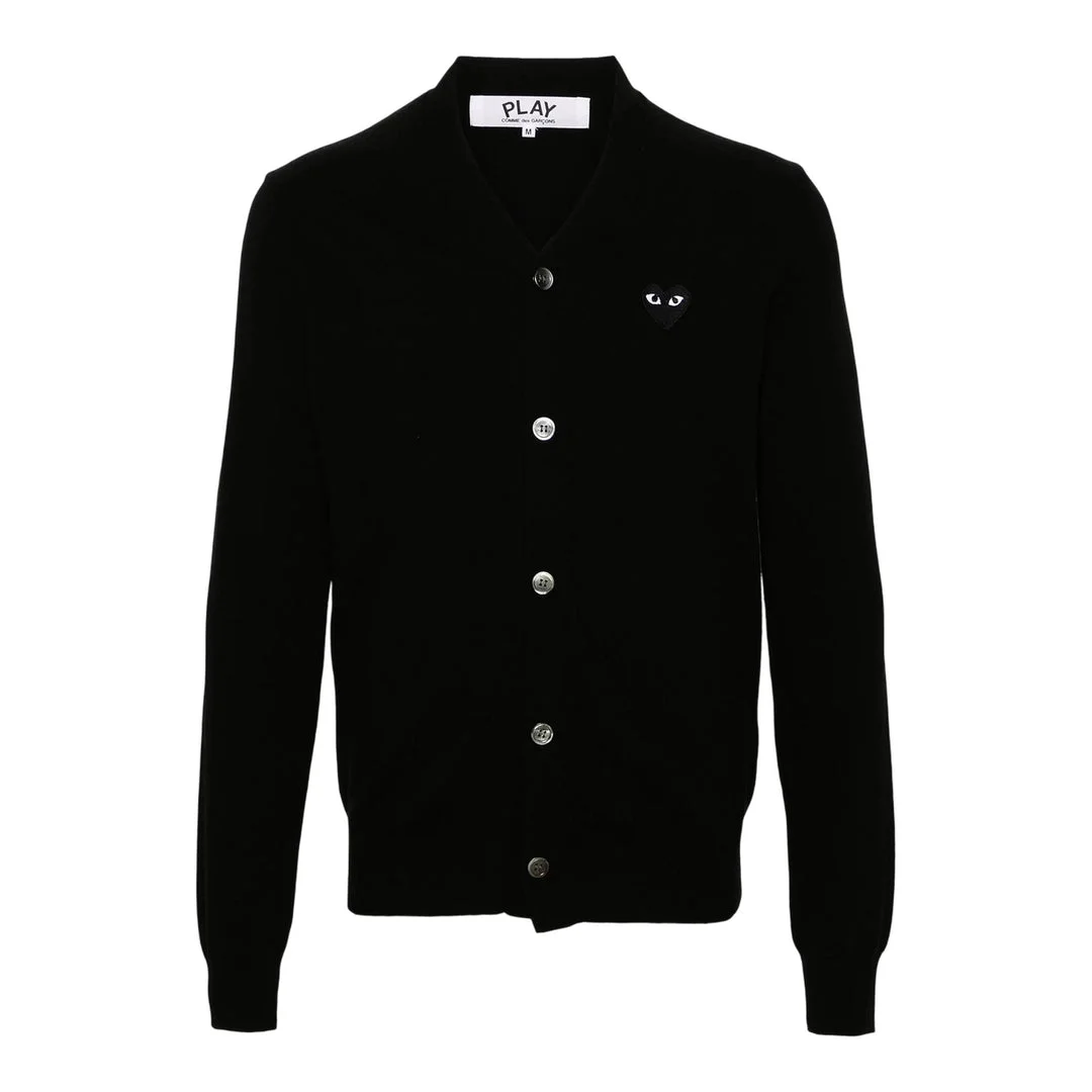 600052933BLKXXS / A-AX-N024/051/1 - Button-front closure with five buttons - Signature heart emblem with eyes - Ribbed collar, cuffs, and hem - Premium knitted cotton construction - Unisex fit - Long sleeves COMME des GARCONS PLAY V-Neck Cardigan delivers avant-garde Japanese design with minimalist sophistication and unisex versatility. Crafted from premium knitted cotton in deep black, featuring the signature heart emblem with distinctive googly eyes on the chest. The classic cardigan silhouette with button-front closure creates a timeless piece that bridges streetwear and luxury fashion.