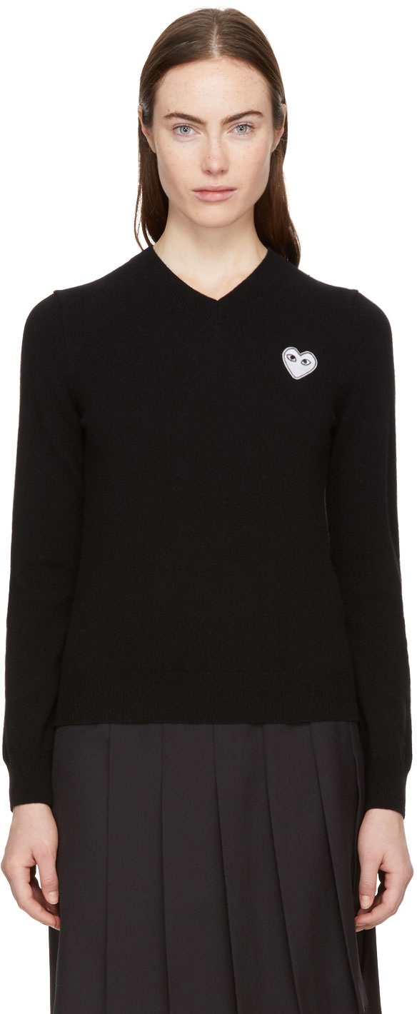 Black Heart Patch V-Neck Sweater