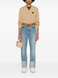 heart-patch wool jumper Highlights - Camel brown - Wool - Knitted construction - Signature heart patch - V-neck - Long sleeves - Ribbed cuffs and hem - When buying this unisex item, keep in mind that it is graded in standard men's sizing. Imported Composition Wool 100% SIZE & FIT Model measurements Height 5 ft 10 in(1.77 m) Bust/Chest 33.07 in(84 cm) Hips 37 in(94 cm) Waist 24.8 in(63 cm) FittingInformation This unisex piece is designed for a relaxed fit whether you usually select women's or men's sizes Made with a midweight knit, this piece offers some stretch