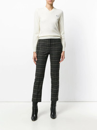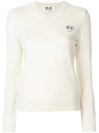 V-neck pullover White wool V-neck pullover from Comme Des Garcons Play. Imported Composition Wool 100% SIZE & FIT Model measurements Height 5 ft 10 in(1.77 m) Bust/Chest 32.67 in(83 cm) Hips 35.03 in(89 cm) Waist 24.4 in(62 cm) Measurement SLEEVE LENGTH 20.98 in(53.3 cm) LENGTH 20.51 in(52.1 cm) WAIST 29.01 in(73.7 cm) BUST 30 in(76.2 cm) Washing instructions Dry Clean Only